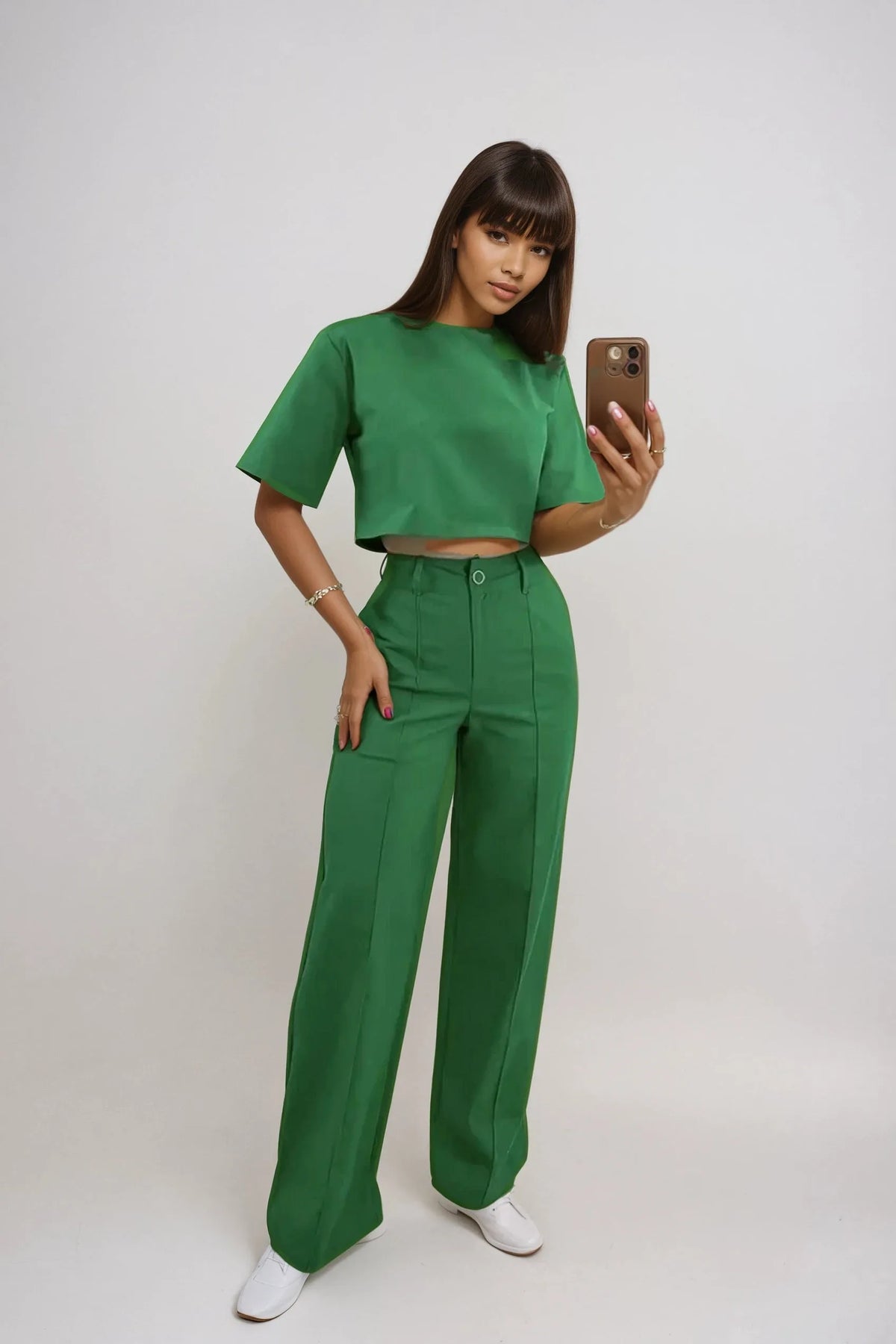 The Vienna Power Set is the perfect combination of minimalism and bold sophistication. Designed with clean lines and a tailored silhouette, this two-piece set features a structured crop top and high-waisted wide-leg trousers, creating a polished yet effortless look. Ideal for power dressing, statement street style, or elegant casual wear, this set makes an impact wherever you go.