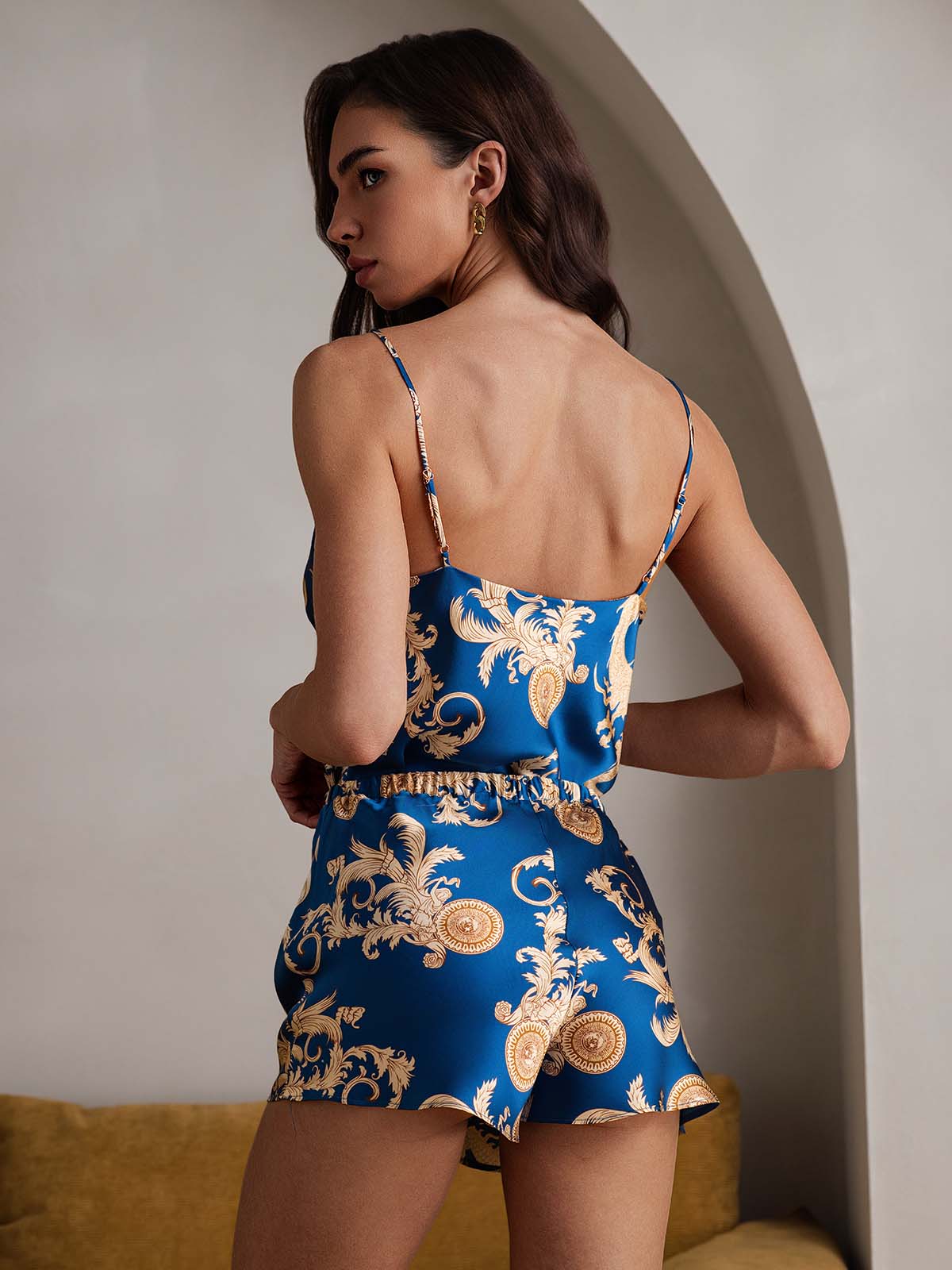 The Mystic Dragon Silk Sleep Set with an exclusive dragon pattern combines elegance and comfort. The V-neckline and unique design make it perfect for memorable moments. Unique color and fabric, ideal for a special evening and a luxurious experience.