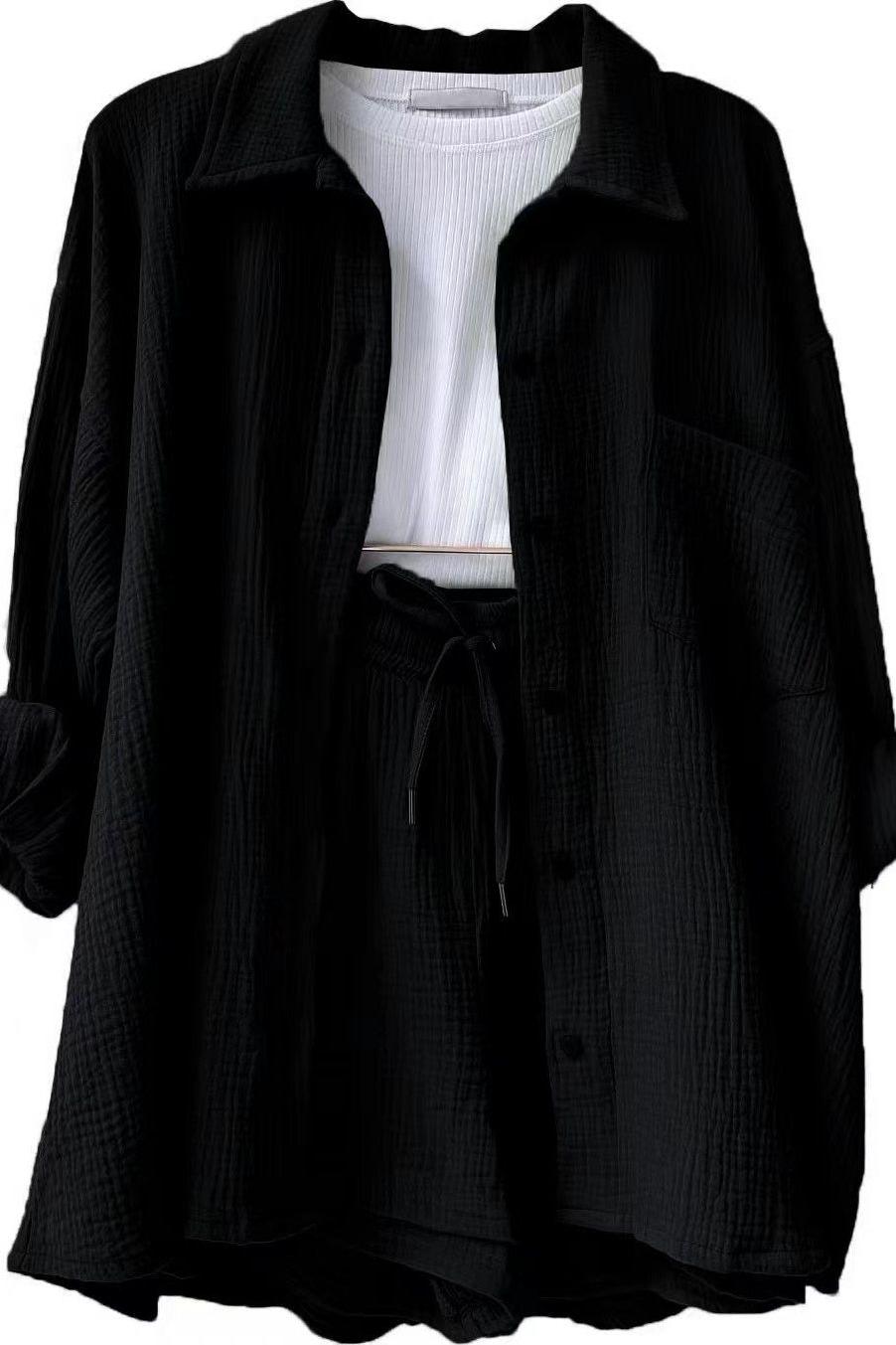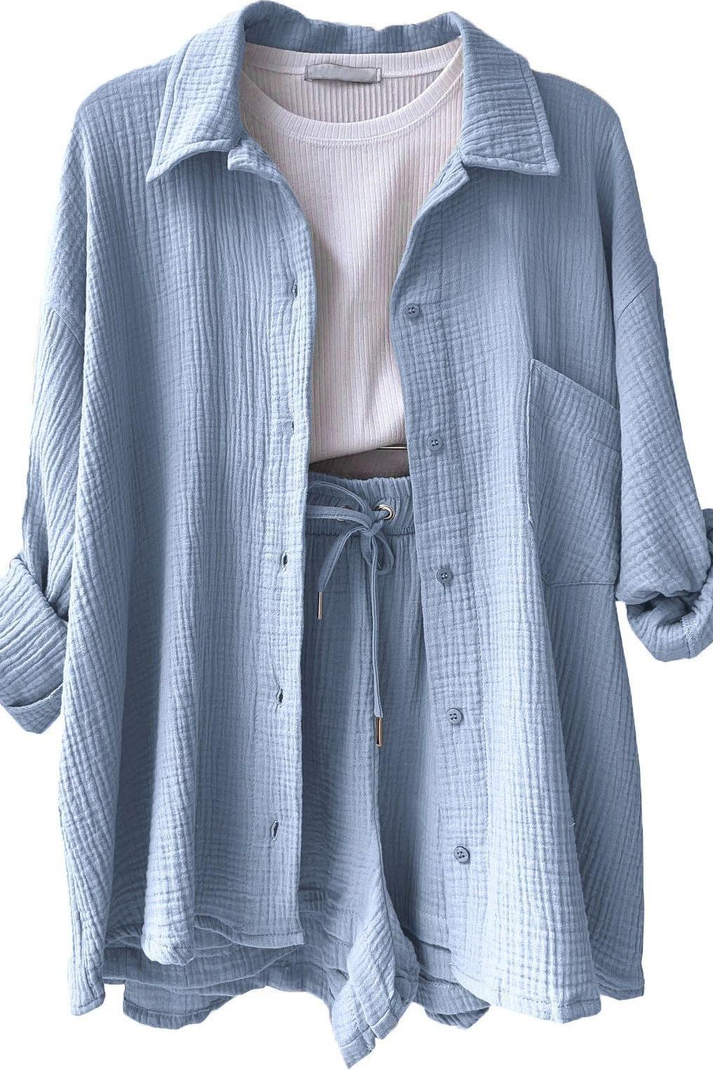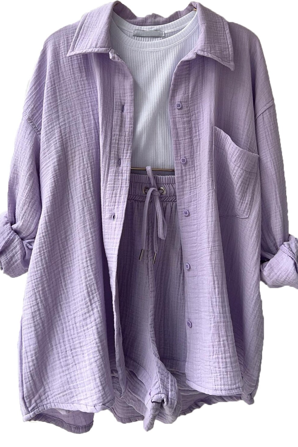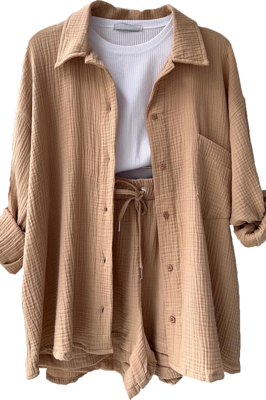 The Élodie Pop Color Set is designed for relaxed elegance and everyday versatility. Featuring a lightweight, breathable fabric, this set includes a button-up shirt and matching drawstring shorts, creating a laid-back yet polished look. Perfect for lounging, travel, or casual outings, it offers a comfortable fit with a stylish edge.